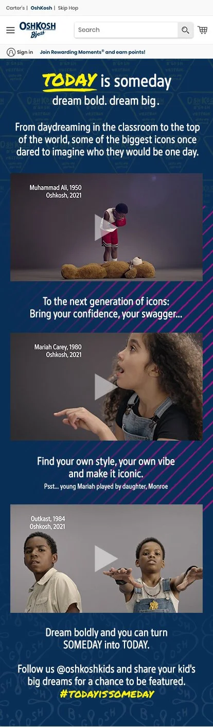 From the summer of 2018 to Fall of 2022 I was fortunate to be part of elevating an amazing brand under Carter’s / OshKosh B’gosh. Here are a few samples of what I was up to: